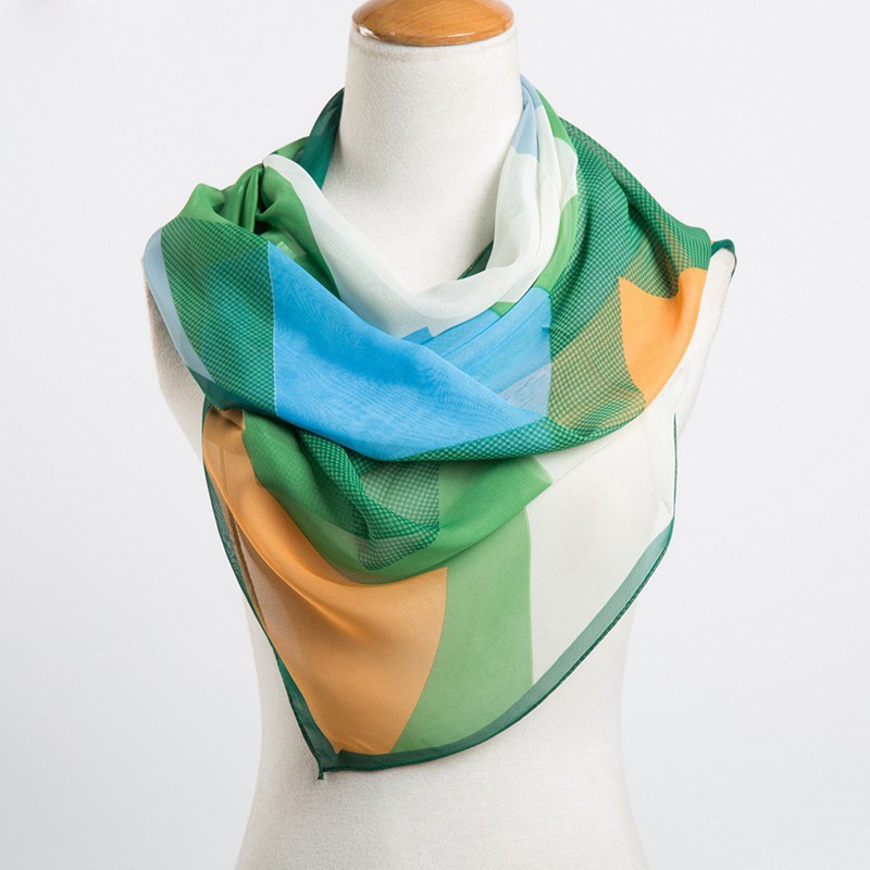 Bianka színes női kendő zöld kék narancssárga színben 1