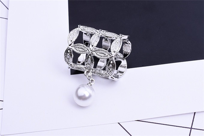 Ezüst színű kendőgyűrű lógó gyönggyel 3