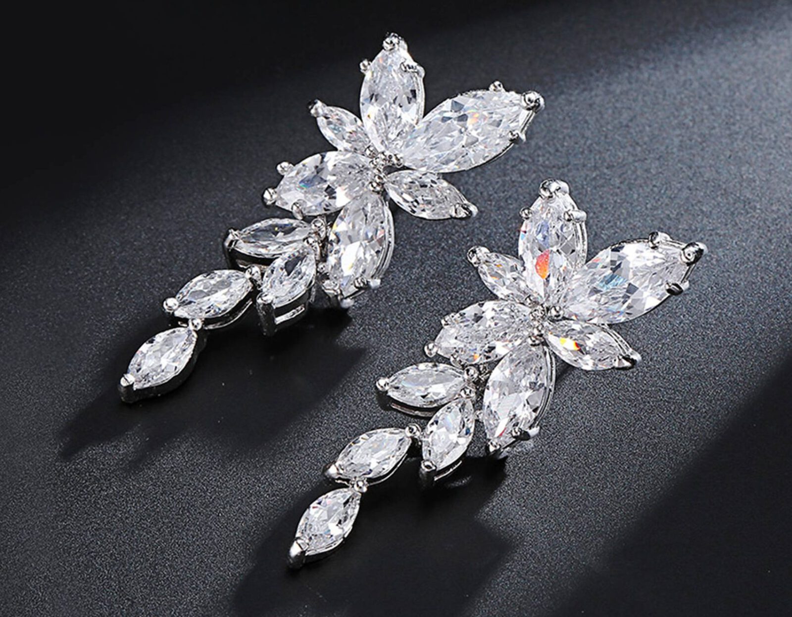 Gyémánt utánzat fülbevaló levél alakú drágakövekkel